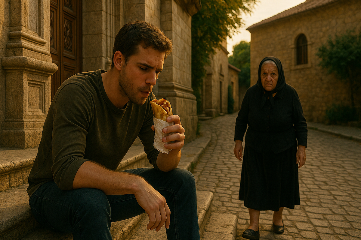 I once took a bite out of a gyro while sitting on the footsteps of a church in a secluded quarter of Athens.